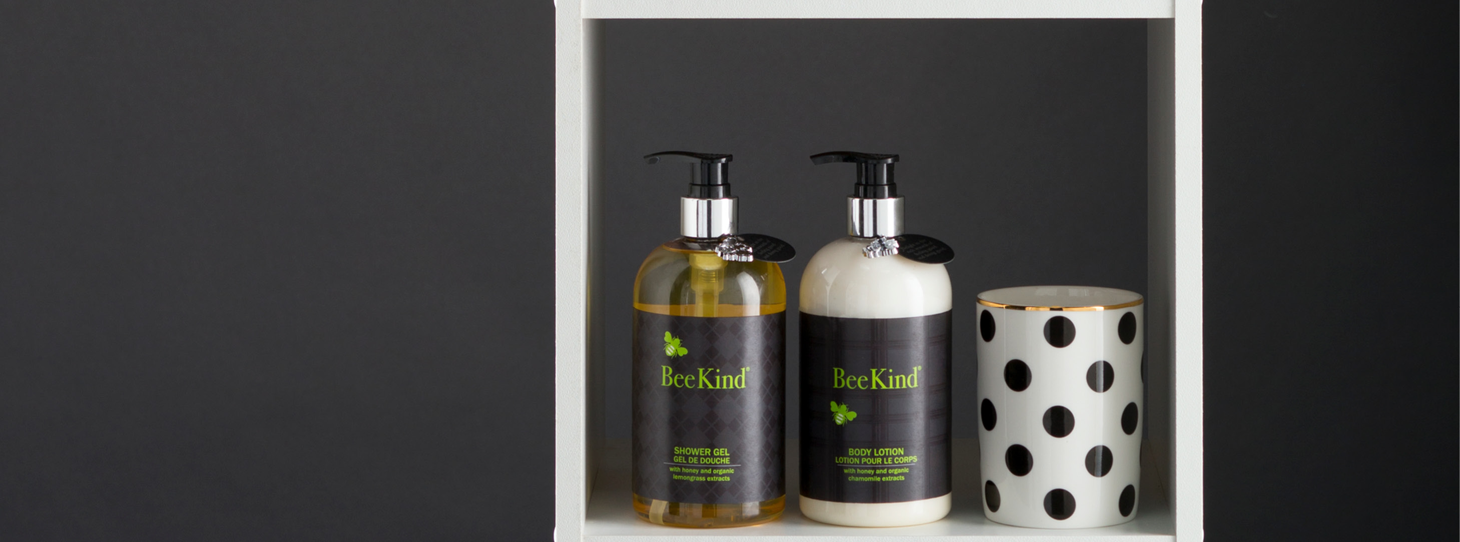 The BeeKind Collection combines honey with certified organic extracts of red clover, calendula, lemongrass and chamomile, and therefore is as soothing as it is stylish. Using these products supports honey bee and sustainable pollination research.